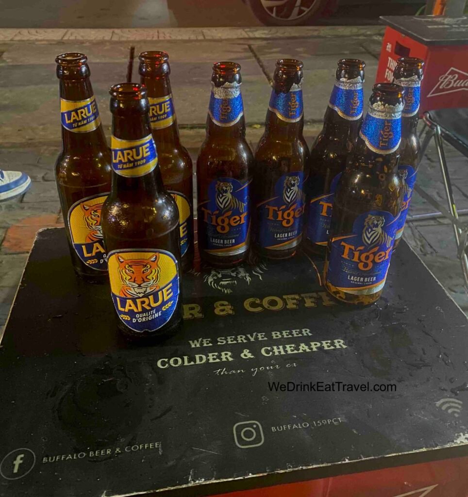 Here they have a variety of beers on offer. Yet for local beers, you can get a small bottle of Huda beer at 35,000 VND. Plus, they also have the large ones at 450ml.